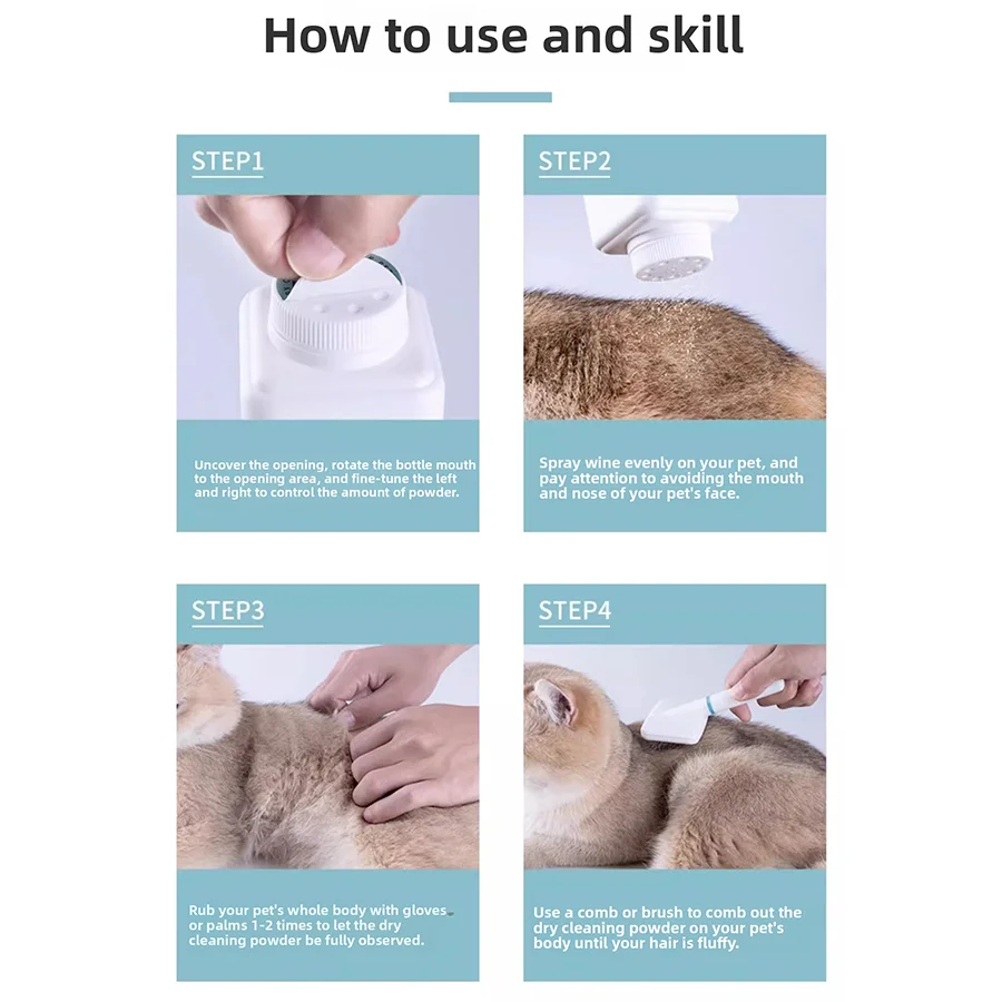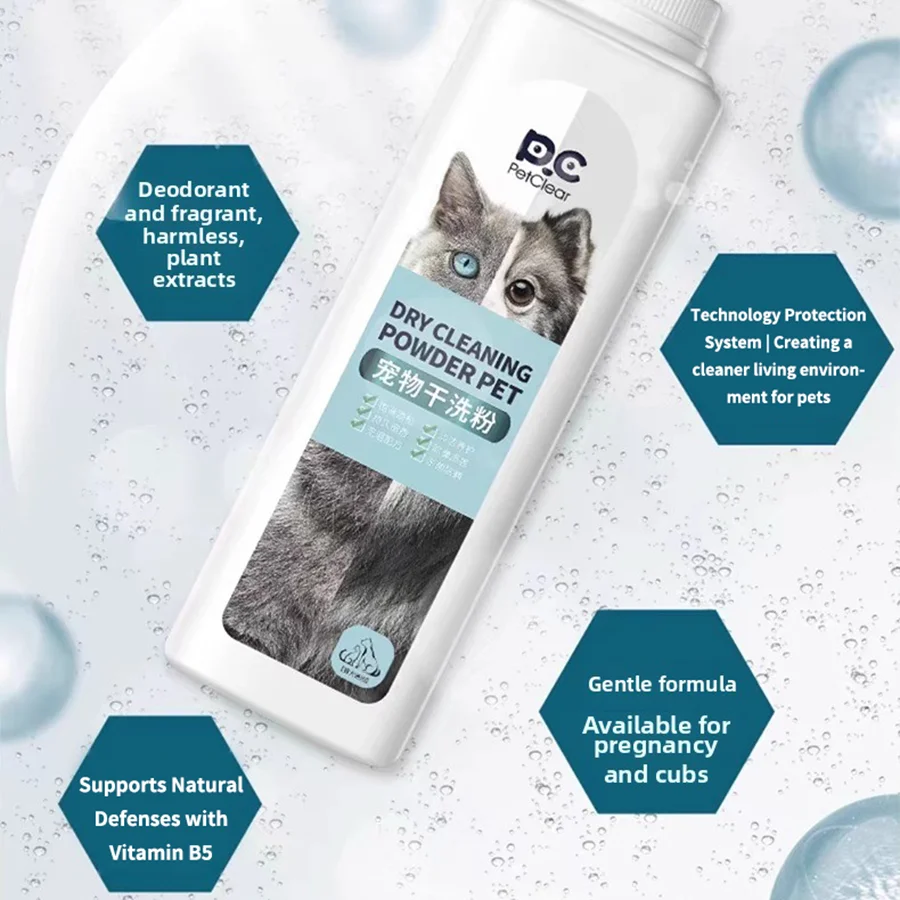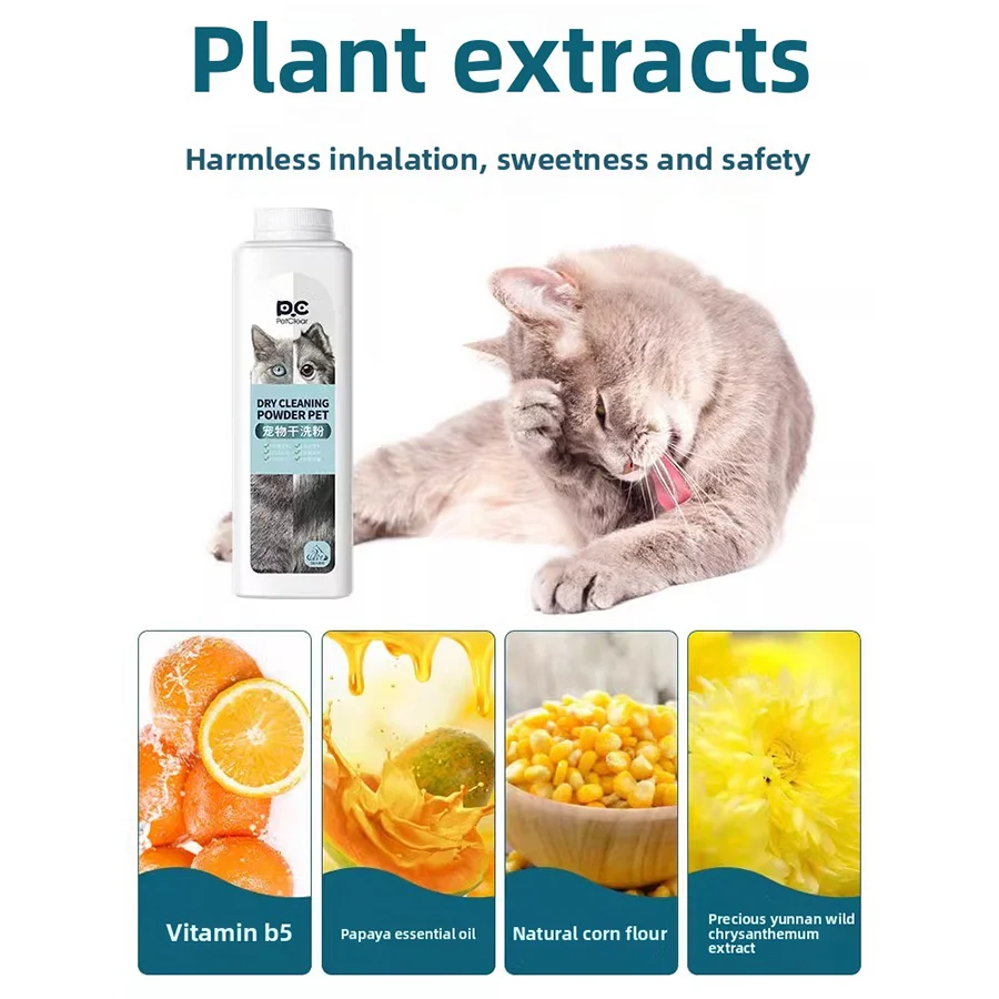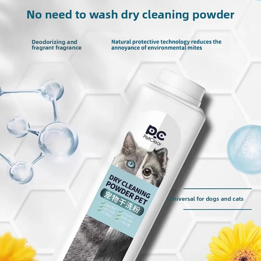 PETCLEAR 360g Pet Dry Shampoo Cleaning Powder Dog Cat Waterless Bath Powder Dog Odor Deodorizer Plant-Based Pet Cleaning Powder