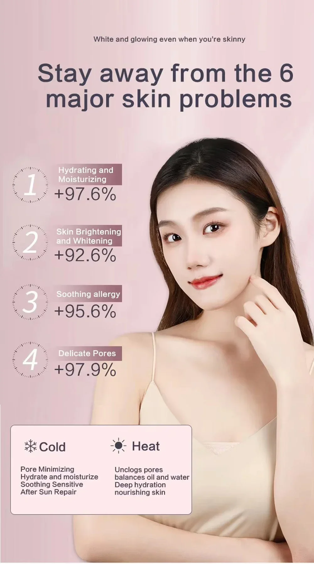 Refreshing Cold Mist: Instantly soothes and calms the skin, tightening pores, reducing puffiness, and locking in moisture for a firm, supple, and glowing finish.